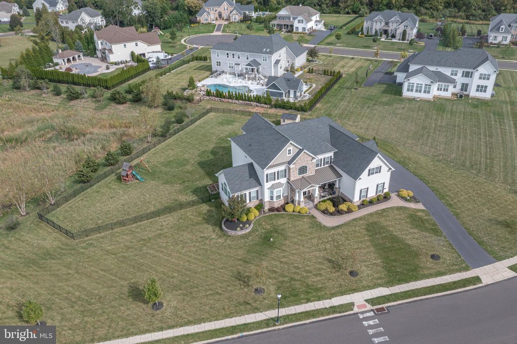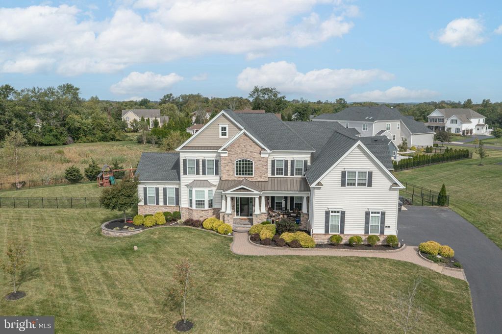 Set on a full acre in Ivyland and offering over 6,000 square feet of living space, this stunning five-bedroom, four-and-a-half-bath estate in the prestigious Reserve at Northampton community blends timeless elegance with modern luxury. A dramatic two-story foyer with a sweeping butterfly staircase, hardwood floors mostly throughout, and detailed crown molding sets the tone. An elegant dining room with a butler's pantry connects seamlessly to the kitchen area. The formal living room flows into a spacious conservatory filed with natural light and a handsome spacious office with built-ins. Across the rear of the home is an expanded gourmet kitchen which boasts a large island with counter seating, stainless steel appliances, and a breakfast area. Ideal for entertaining and open to the kitchen is generous yet cozy gathering room with a floor-to-ceiling stone gas fireplace with raised hearth; a perfect gathering spot for family and friends. Down the hallway from the kitchen is a very large walk-in pantry, a half bath and access to a 3-car garage. Upstairs, the luxurious primary suite boasts plenty of closet space and a spa-inspired bath. Four additional bedrooms and three full baths, including a Jack-and-Jill design, provide space and comfort for family or guests. The lower level, with ten-foot ceilings, offers endless possibilities for future customization. Located within the award-winning Council Rock School District, this meticulously maintained property combines luxury, comfort, and convenience in one remarkable package. Don't miss out on this special opportunity to call this splendid property your own.