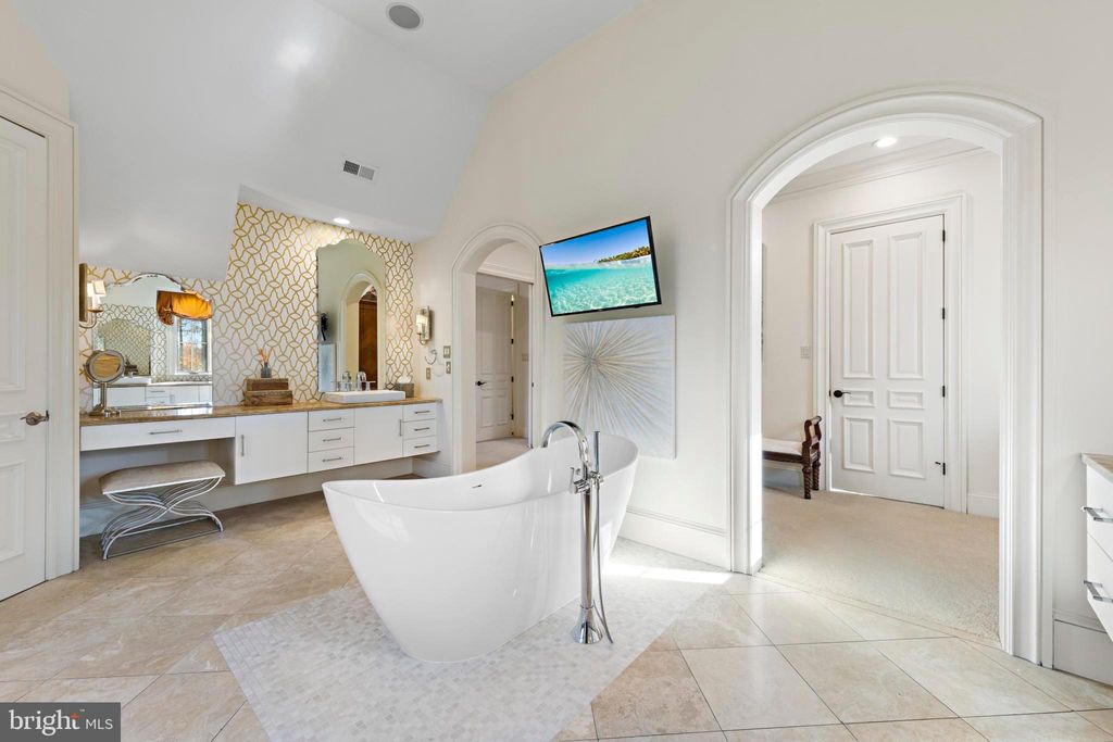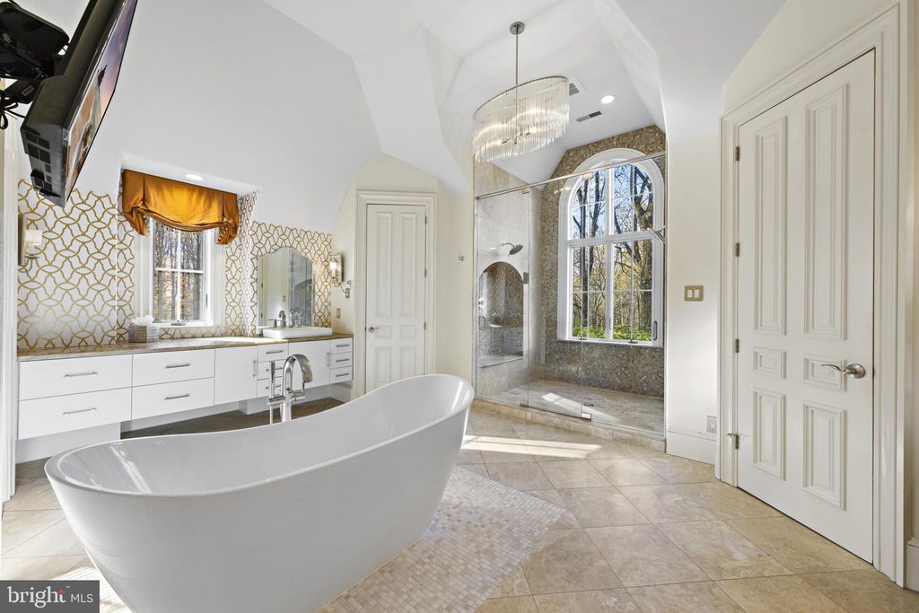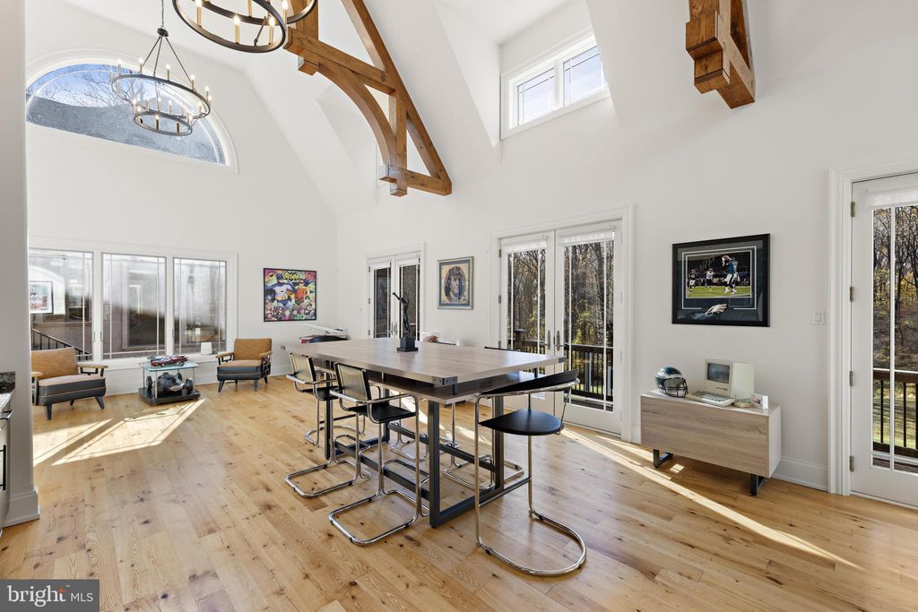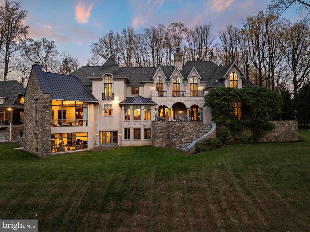 This stunning custom-built French Normandy estate is set on 5 private acres, backing to over 800 acres of preserved land within the Pennypack Trust. Originally designed as the personal residence of a renowned luxury builder, the home exemplifies exceptional craftsmanship, remarkable efficiency and extremely low property taxes. Secluded yet convenient, the property is just minutes from I-95 and the PA Turnpike, and only 5 minutes from shopping, dining, and everyday conveniences"”offering the perfect balance of privacy and accessibility. The grand foyer features limestone floors, a coffered ceiling, and a double-sided gas fireplace shared with the formal dining room. The formal living room includes its own fireplace and French doors opening to a terrace ideal for elegant gatherings. The gourmet kitchen is a chef's dream, with custom cabinetry, Calacatta marble countertops, hardwood floors, a spacious island, breakfast room with serene views, and a cozy hearth room with fireplace. Anchoring the main level, the two-story great room boasts a floor-to-ceiling stone fireplace and panoramic year-round views of the grounds. A private office and dual staircases complete this level.Upstairs, the luxurious primary suite features a sitting room, fireplace, multiple walk-in closets, a spa-inspired bath with double-headed shower, and private balcony overlooking the grounds. Three additional en-suite bedrooms and a conveniently located laundry room complete the upper floor. The finished lower level is perfect for entertaining, featuring a full bar, catering area, second kitchen, expansive seating and game spaces, a fifth bedroom with full bath, and a gym with glass walls offering stunning views that make you feel like you are exercising in nature. Outdoor living is exceptional, with expansive terraces overlooking peaceful, scenic grounds. A carriage house connected by a walkway with soaring 22' ceilings provides flexible space for an office, studio, or guest suite, with a three-car garage below"”plus an attached four-car garage at the main residence.