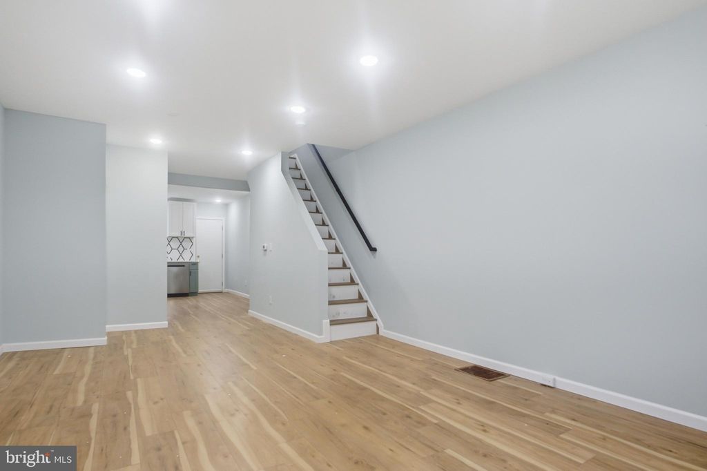 Welcome to this beautifully updated row home located in the vibrant Point Breeze neighborhood of South Philadelphia. This charming home features sturdy hardwood flooring and recessed lighting throughout, creating a warm and modern atmosphere. The open-concept main level offers endless possibilities for decorating and entertaining. A thoughtfully designed half bathroom is conveniently located on the first floor, featuring a stylish sage green vanity, modern lighting, and a window that fills the space with natural sunlight. The kitchen is a standout, featuring new stainless steel appliances, beautiful sage green lower cabinets paired with crisp white upper cabinets, and plenty of workspace for meal prep. Just beyond the kitchen, step out to a cozy fenced-in cement yard. Upstairs, are three bedrooms and a newly renovated full bathroom. The primary bedroom features a charming exposed brick column accent and ceiling fan, adding character and comfort to the space. The bathroom has been newly remodeled, continuing the home's stylish theme with sage green cabinetry, black fixtures, and a shower/tub combination. This home is thoughtfully designed with a functional layout and is move-in ready. Don't miss the opportunity to own a home in the bustling Point Breeze section of South Philadelphia. Schedule your showing today!